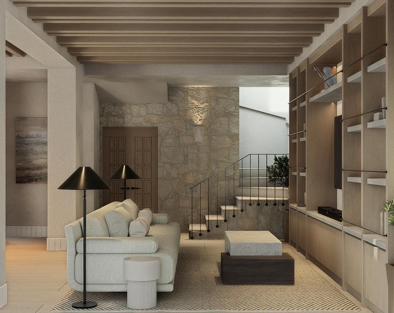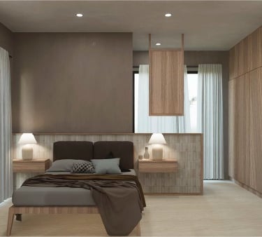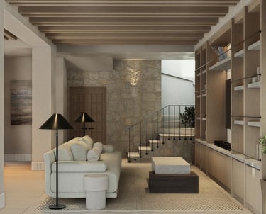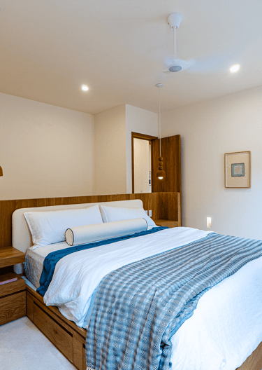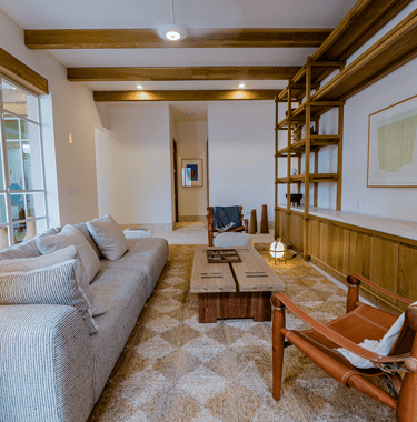 The living area is spacious and filled with natural light, designed for comfort and relaxation, while the bedrooms offer a private and serene retreat.