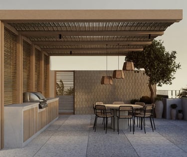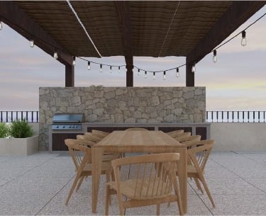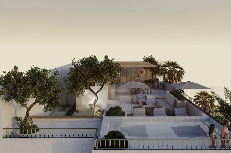 The rooftop has been conceived as the perfect gathering point, providing areas to relax, socialize, and enjoy unforgettable moments. It becomes the heart of the project, where residents can indulge in an exclusive lifestyle and connect with their neighbors in a relaxed and harmonious environment.